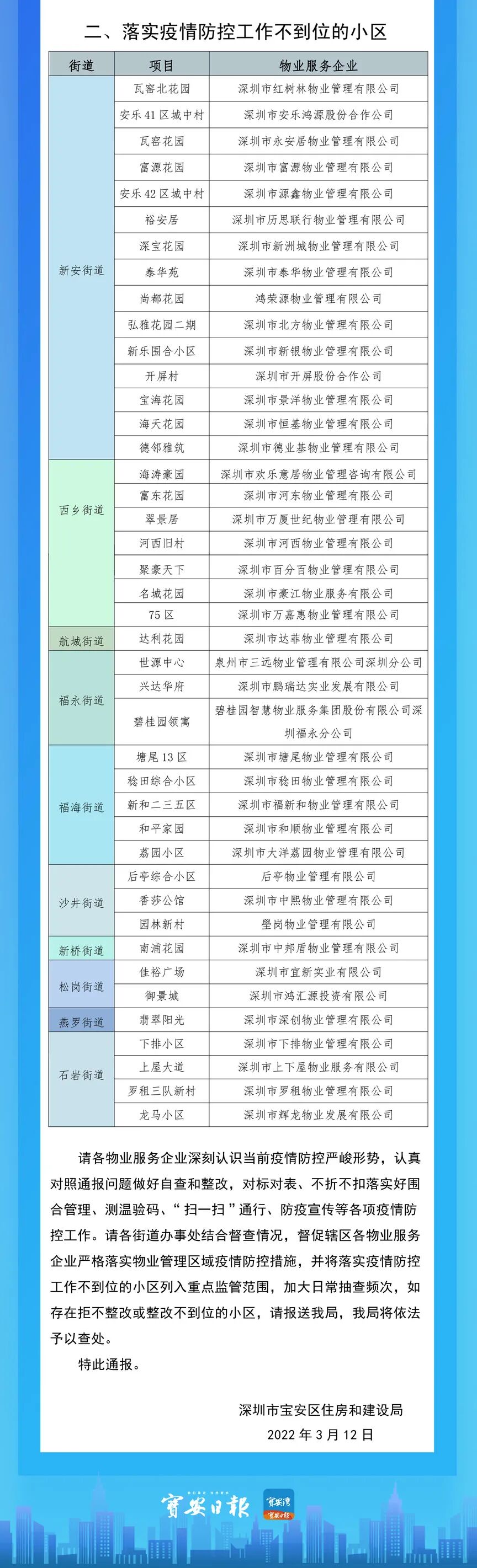 (原标题《疫情防控不到位,宝安42家物业公司上“黑榜”!》)