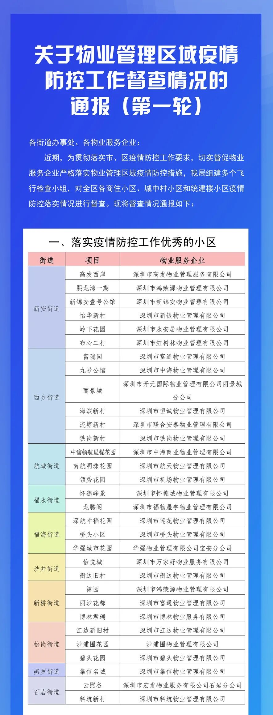 深圳市宝安区住房和建设局关于物业管理区域疫情防控工作督查情况的通报(第一轮)