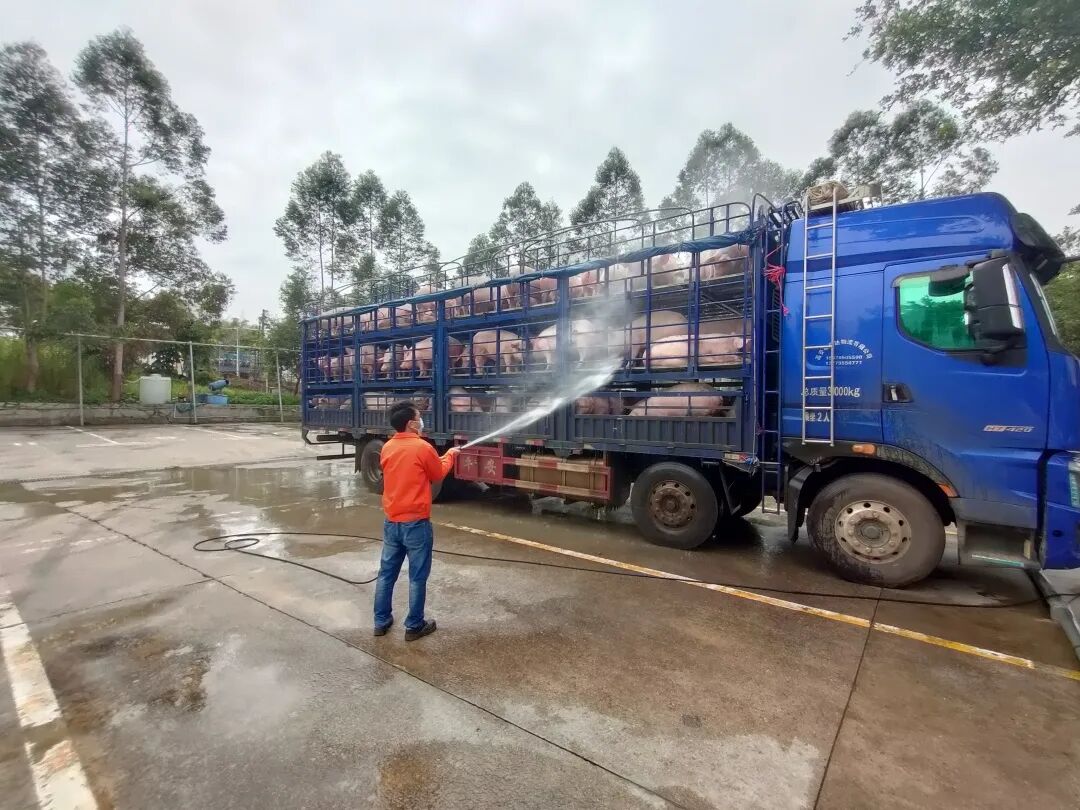 在安全生产方面,京基智农猪场加强防疫措施,进出车辆及人员严格按照防疫检疫措施进行工作。场内人员全封闭式管理,每日查验体温、戴口罩;对运猪车进行全面清洗、消毒、烘干工作,阻断车辆可能携带的病原微生物,确保物流配送安全;运输司机每日查验体温、戴口罩、24小时核酸,做好个人防护;生猪定点屠宰,在整个生产线上剖检、触检等层层检疫。