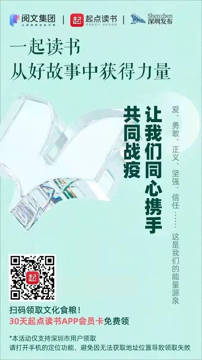深圳朋友们可以长按识别下方二维码,领取“起点读书”30天会员卡,免费阅读海量优质作品。