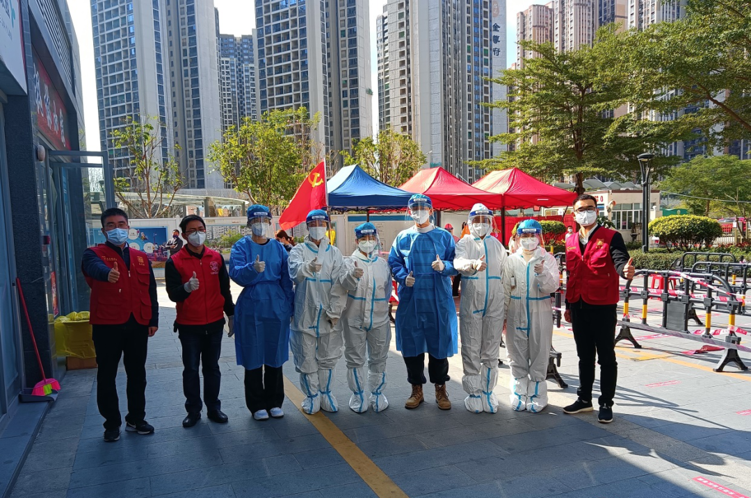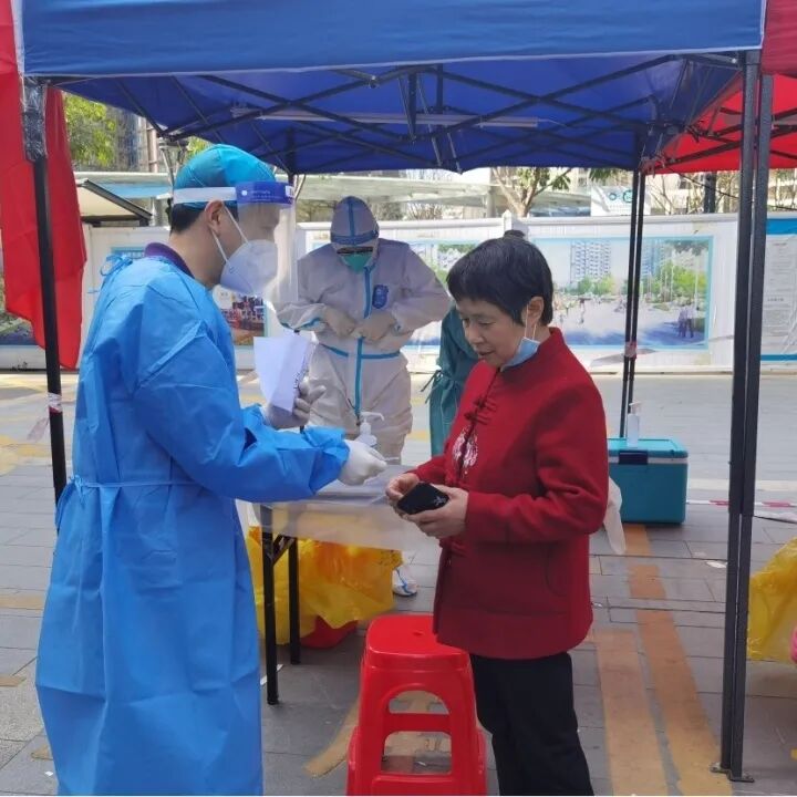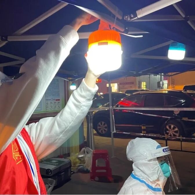 夜里视线受阻,检测难度较白天加大,烟草公司青年团干团员们在发现检测点灯光不亮后,便立即协助换上新灯泡,既为夜间工作的顺利开展点亮了“指引灯”,也为紧张进行检测工作的医疗人员点亮了“暖心灯”。“请戴好口罩,排好队,打开粤核酸码......”青年团干宣陈林得知社区检测压力大,便选择推迟原定的结婚计划,提出立即加入防疫突击队,与爱人刚拍摄完婚纱照便投入到社区疫情防控支援工作,用实际行动书写“不忘初心,担当使命”。
