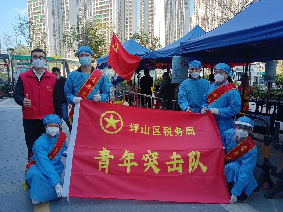 近期,伴随深圳新一轮新冠疫情的发生,防疫工作面临严峻挑战。坪山区税务局团支部、坪山区烟草专卖局(公司)团支部闻令而动,尽锐出战,坚决响应团市委、团区委关于组织参加战疫志愿活动的号召,主动融入疫情防控工作大局,积极参与战疫工作,为坚决打赢疫情防控阻击战贡献坪山青年力量。
