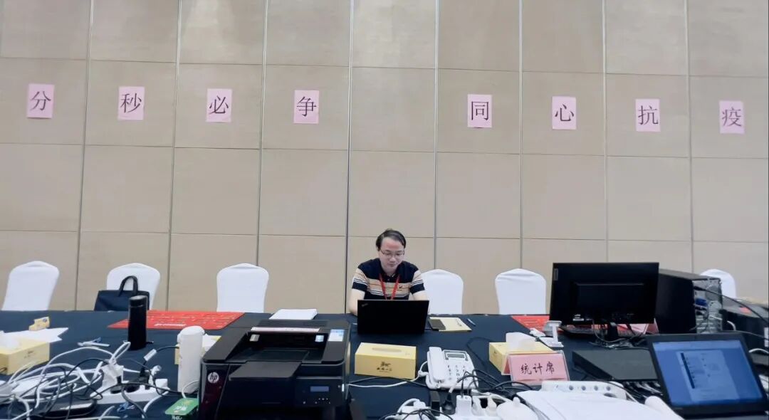 市工信局无线电管理处党支部殷牧原同志(图中女性)全脱产派驻到光明区集中隔离点参与疫情防控工作