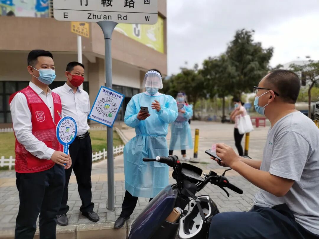 防疫“第一线”,筑牢居民“心”防线。为进一步做好疫情防控工作,全力保障好社区居民的身体健康和生命安全,努力打好疫情防控保卫战,在社区党委的领导下,竹韵花园党群服务站社工联动竹韵党支部、小区物业、小区志愿者服务队等多方资源,凝聚抗疫合力,在竹韵花园卡口落实疫情防控各项举措。一是小区物业工作人员对进出防疫卡口人员进行登记、扫码、测温、消杀等防疫措施;二是党支部党员发挥党员先锋模范作用,党群工作者发挥社会工作专业优势,针对小区封闭式管理防疫举措存在疑问的居民进行防疫政策宣传及耐心解答,安抚居民不安的情绪;三是党群社工组织小区志愿者对来往居民进行疫情防控宣传,提醒来往居民做好个人防护,非必要不外出,养成良好的卫生行为习惯等。