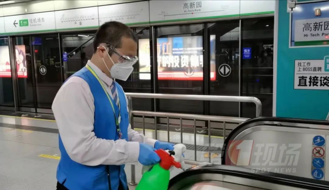 地铁工作人员五分钟一次对扶手电梯等公共区域进行消毒,车站严格执行扫码测温看核酸等疫情防控措施。