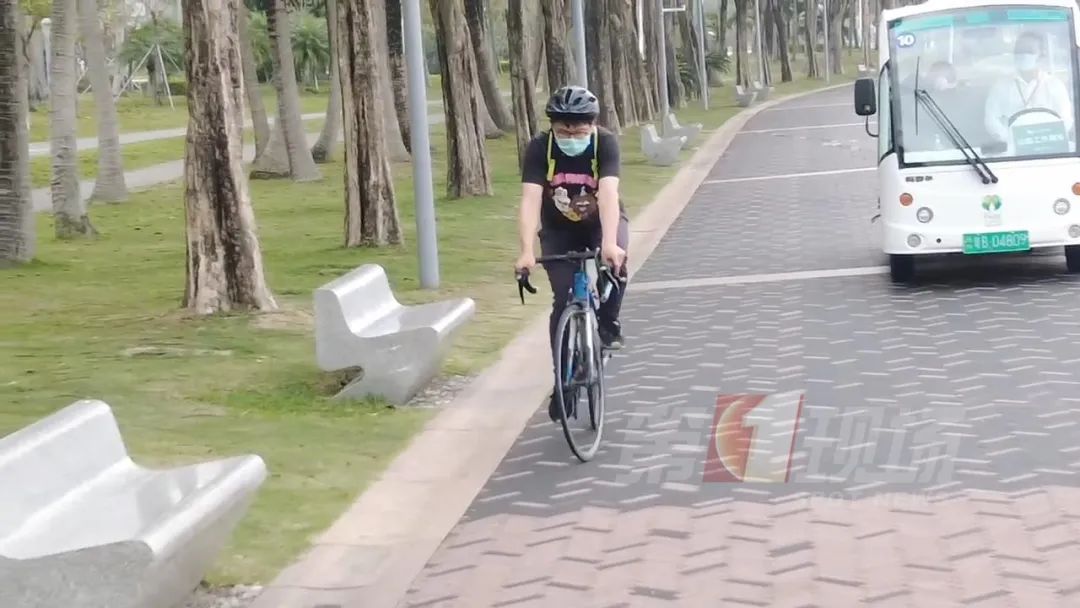 被问及今天和往日的运动体验有何不一样,一位骑行的小伙笑出了声。