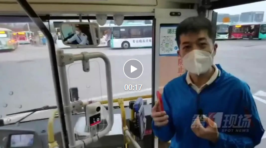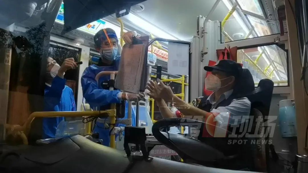 ▲工作人员为公交司机扫码、登记、测体温
