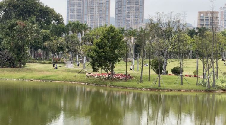 环看四周,香蜜公园里鸟鸣声悠扬婉转,湖景风光旖旎。黄花风铃木开得正艳,湖水微波荡漾明波含翠。许多市民的到来也为这里增添了不少人气,城市的活力正在慢慢恢复。