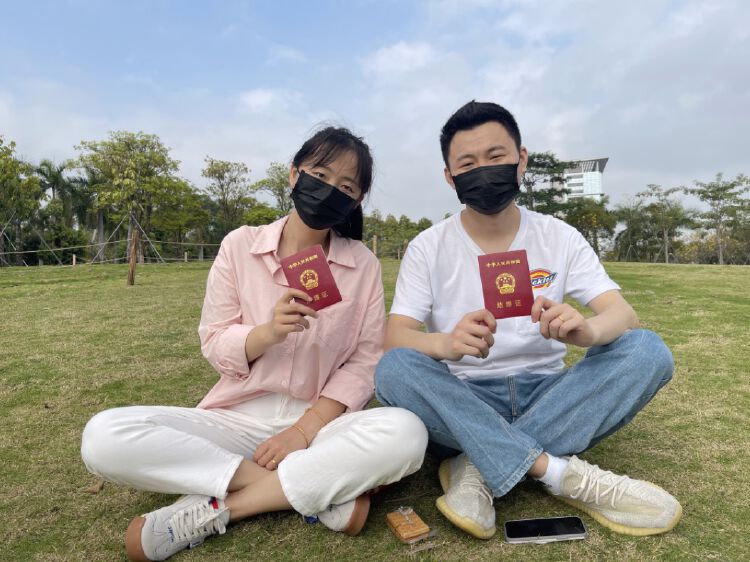 另一边,“解封”首日,他们结婚了。这一天对邵女士和她的另一半来说是个重要的日子:他们领证了!“原本预约在18号登记结婚的我们,没想到正好赶上疫情居家隔离,今天是解封第一天,原本想着来香蜜公园散散步,没想到附近的民政局恢复了正常工作,我们就顺便领了证。”邵女士说道。当被问到准备打算如何庆祝时,邵女士表示,由于现在还是疫情特殊时期,今晚准备就在家里庆祝。