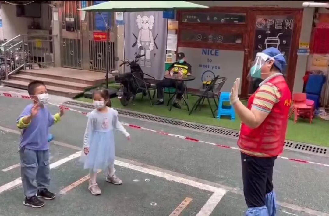 原来,这是社区小朋友为志愿者们做的“打气”表演。他们说,哥哥姐姐们辛苦了,他们在学校学了一支舞蹈,想跳给大家看,给大家加加油!于是便有了上面这一幕,罗检志愿者和社区小朋友一起跟着音乐节拍,开心地跳起舞来。