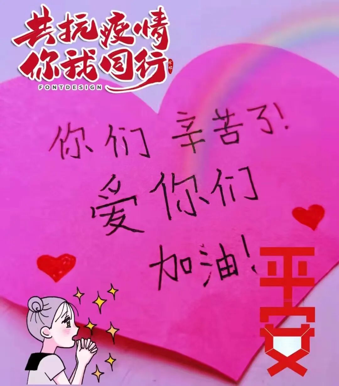 无独有偶,在罗检志愿者驻扎的另一个社区防疫点,志愿者们也收到了小朋友的红心小卡片。社区小朋友在小小的便签纸上,用稚嫩的笔触,写下对所有医护人员和志愿者们满满的的感谢与祝福:“你们辛苦了!爱你们!加油!”