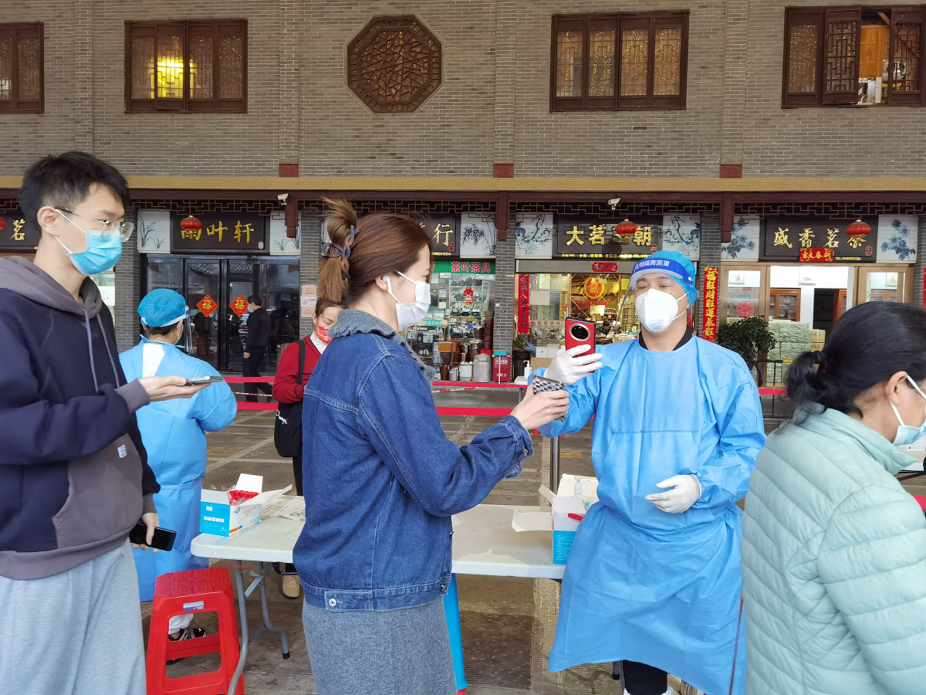 罗湖区侨联委员、深圳市乐记海洋食品有限公司董事长、党支部书记张靖派充分发挥党员先锋作用,带领该公司党员和企业员工支援黄贝街道新秀社区古玩城、银丰大厦小区防疫工作。在核酸点现场,企业志愿者们在社区工作人员的指导下,积极参与扫码登记、现场指引和秩序维持等工作,用志愿服务诠释公益初心,用抗疫精神擦亮使命担当。