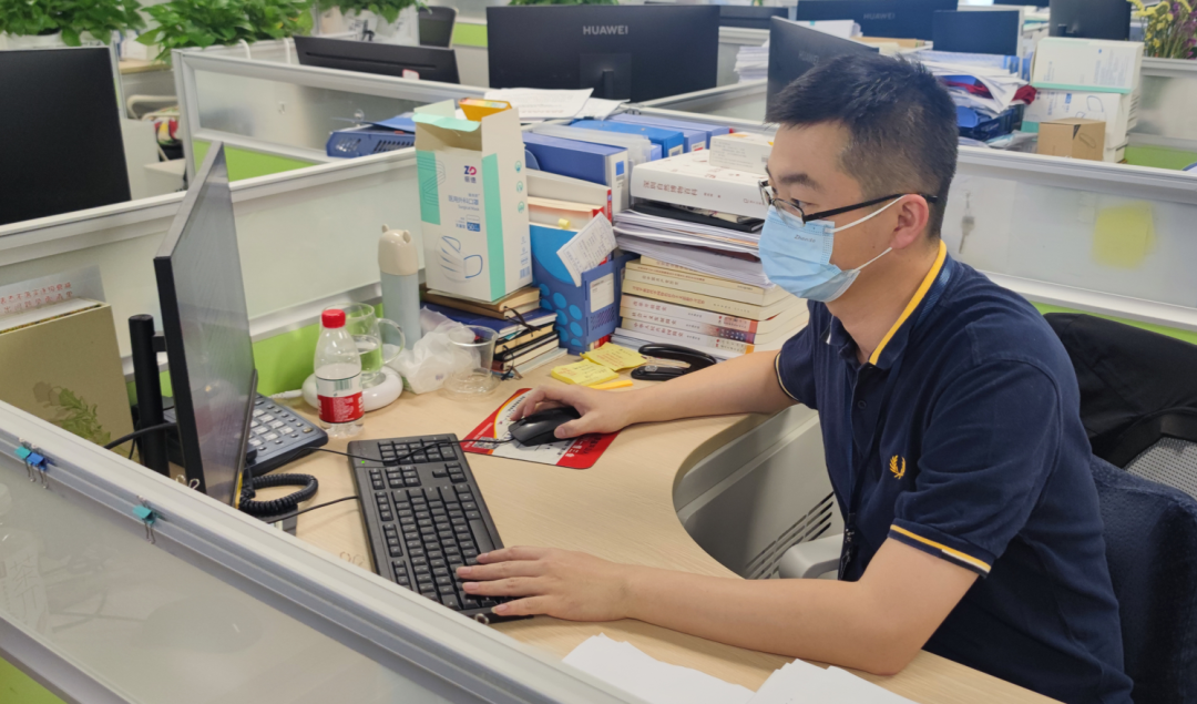 由于疫情防控任务重,常常召开紧急会议,经常在凌晨收到会议通知。为了确保会务工作及时有序开展,作为会务工作人员的王飞时刻关注会务消息,协助会议科对接会议室;并时时关注防疫动态,了解后勤保障等基本情况及存在的困难,提供力所能及的帮助。