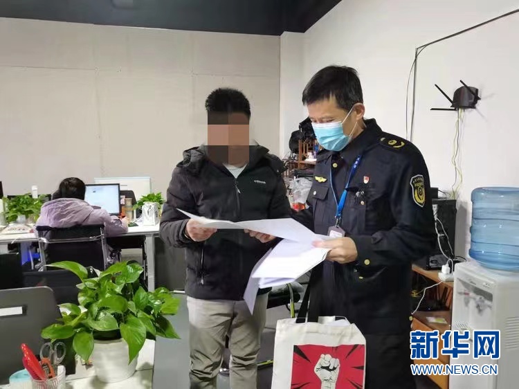 广州市白云区市场监督管理局工作人员执法中。新华网发