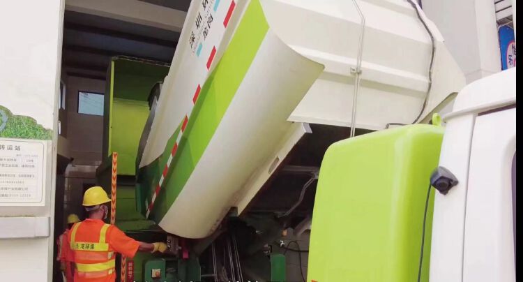 ➤从靠近垃圾桶到垃圾打包出桶,工作人员全程不会直接接触生活垃圾,现场无明显异味。装车完毕后,工作人员将收运来的垃圾,运往附近的垃圾转运站,倒进垃圾压缩箱里。(一辆车大约可以收12-15桶生活垃圾)