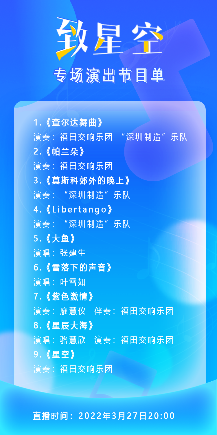 云上星空音乐会将在“福田文体中心“官网、视频号及读特深圳新闻网直播间同步开启直播。