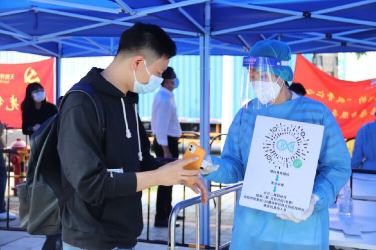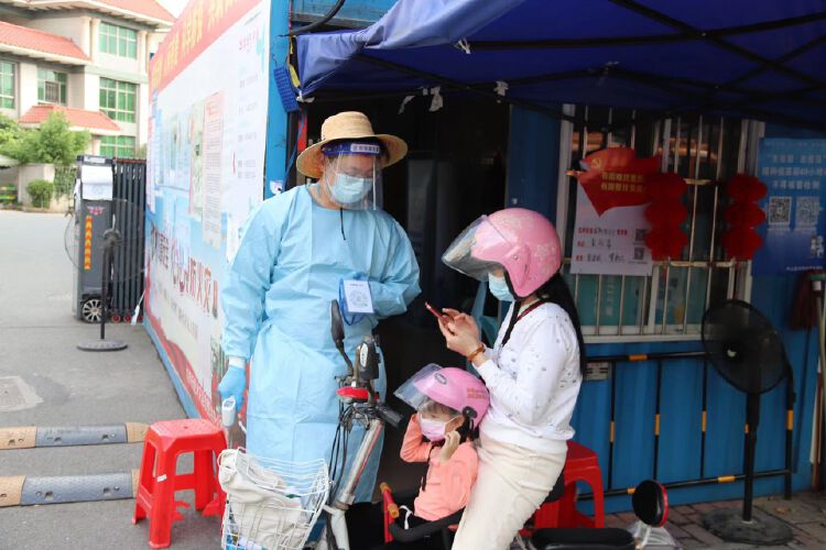 “之前一直在居住的小区做义工,在核酸检测点做义工还是第一次,能为居民提供力所能及的服务,我觉得非常有意义。”在坪山创新广场核酸检测点,根之然生物科技有限公司创始人、香港青年赵曼弛一丝不苟做好扫码、测温工作。