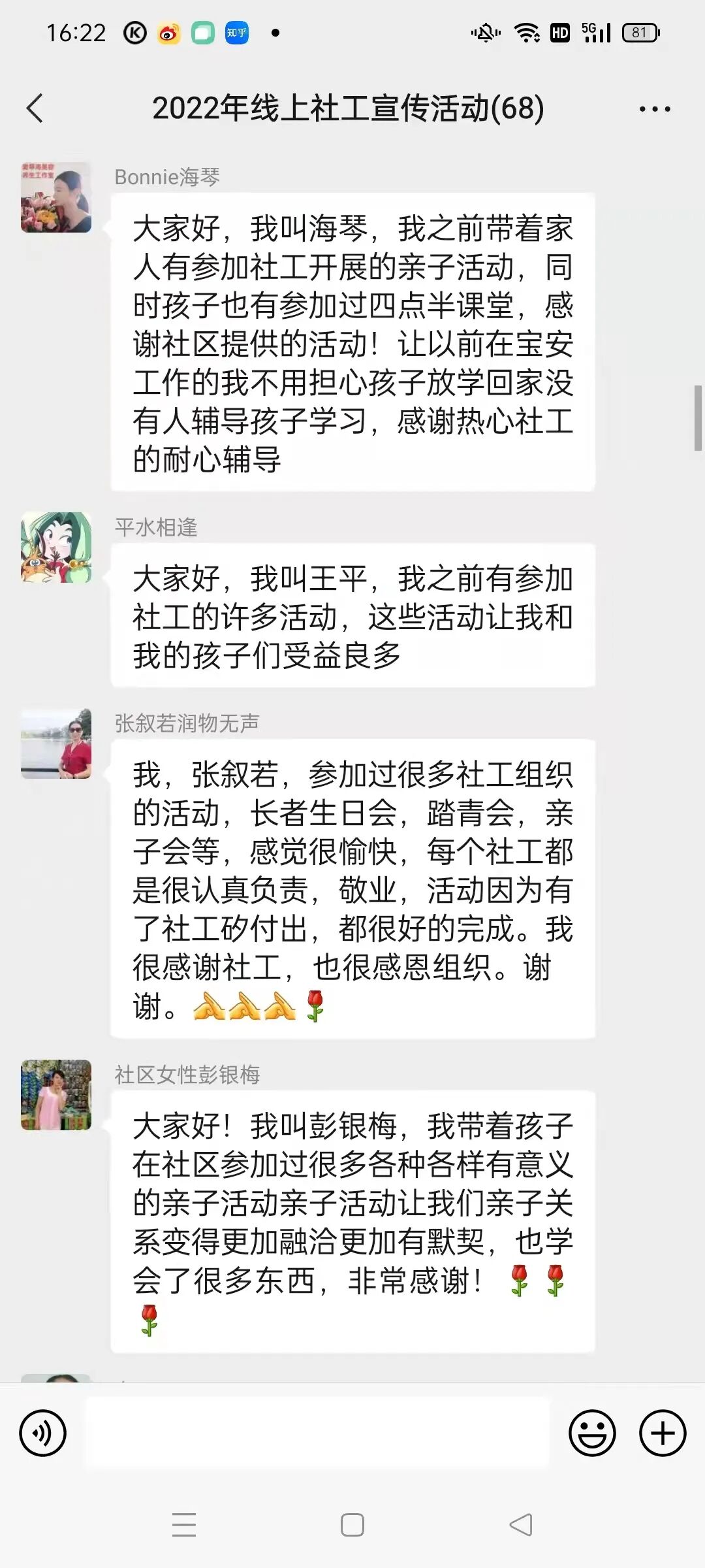 本次社工线上宣传活动,居民积极参与当中,现场氛围十分活跃, 参与居民达60余人。
