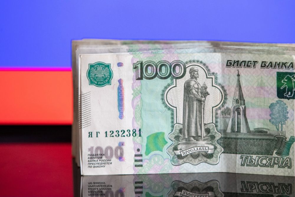 这是3月24日在俄罗斯首都莫斯科拍摄的卢布钞票。新华社记者白雪骐摄