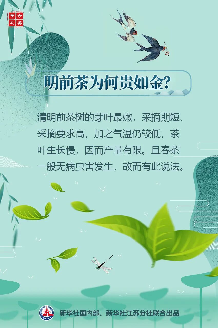 “清明前茶树的芽叶最嫩,采摘期短、采摘要求高,加之气温仍较低,茶叶生长慢,因而产量有限。且春茶一般无病虫害发生,故而有‘明前茶,贵如金’的说法。”杨亦扬说,尽管有此说法,但春季温暖潮湿的气候十分适宜茶树生长,因此清明后、谷雨前的茶叶品质同样上佳。