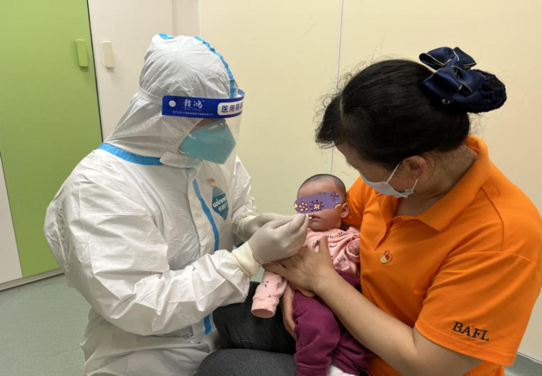 区社会福利中心林国辉医生,为院内儿童采集核酸样本