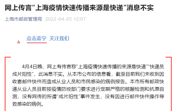 (原标题《网传“上海疫情快速传播来源是快递”消息不实》)