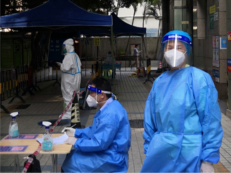 李忠友、谭志珍夫妇在明月社区南方国际核酸采样现场