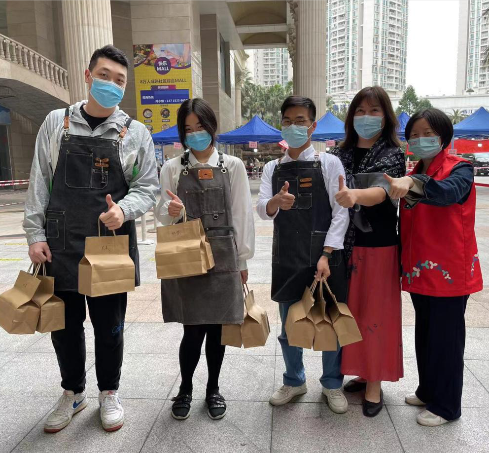 韩一鸣组织店员向社区核酸检测点工作人员送暖心咖啡