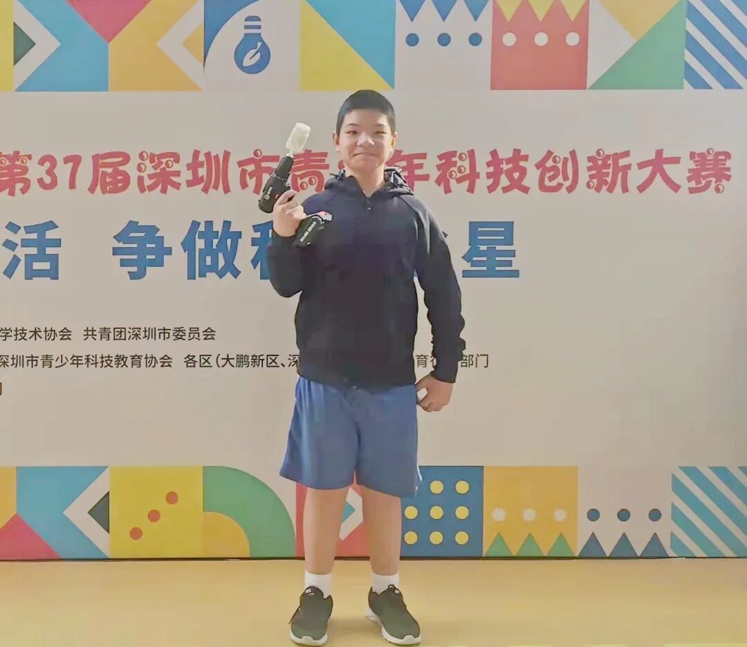 来自光明区实验学校六年级13岁的科创“小达人”邓佳航和他的作品《多功能扳手-基于“蜂巢”仿生原理的活性外形自适应扳手》获得广东省科协主席奖(大赛最高荣誉奖,全省仅5个),并被推荐申报全国赛。