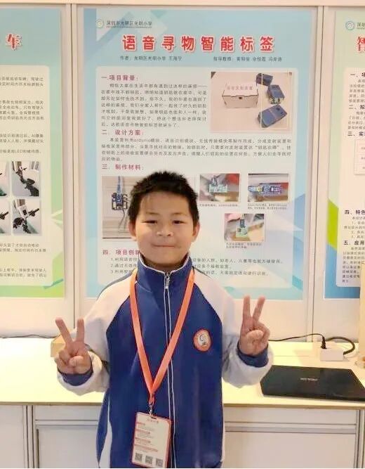 光明区光明小学王海宁的语音寻物智能标签利用语音识别模块、无线传输模块等制作而成,当要寻找对应的物体,只需要对发射装置说关键词等语句,方便人们去寻找对应的物品。