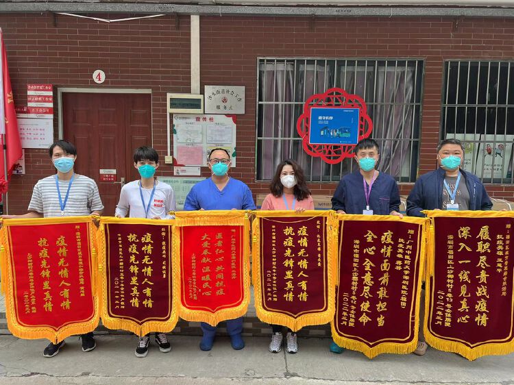 支援防控一线的城管工作人员收到居民自发赠送的锦旗。