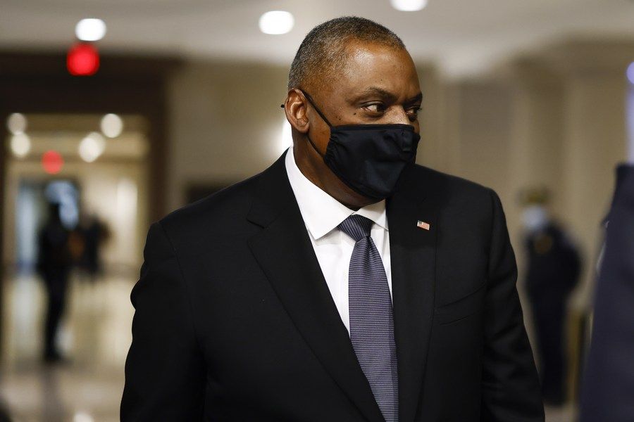 2月2日,在美国首都华盛顿,美国国防部长奥斯汀准备在国会出席一场听证会。(新华社发,沈霆摄)