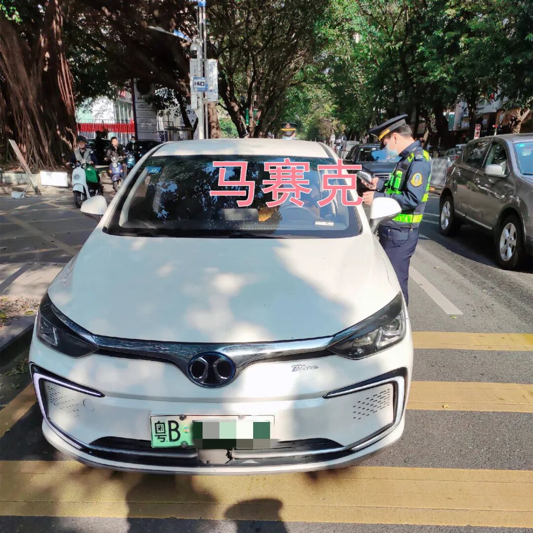 日前,执法支队宝安大队执法人员在宝安区宝民一路开展执法行动,对一辆粤B号牌的白色小轿车进行例行检查,发现车上载着一名乘客。