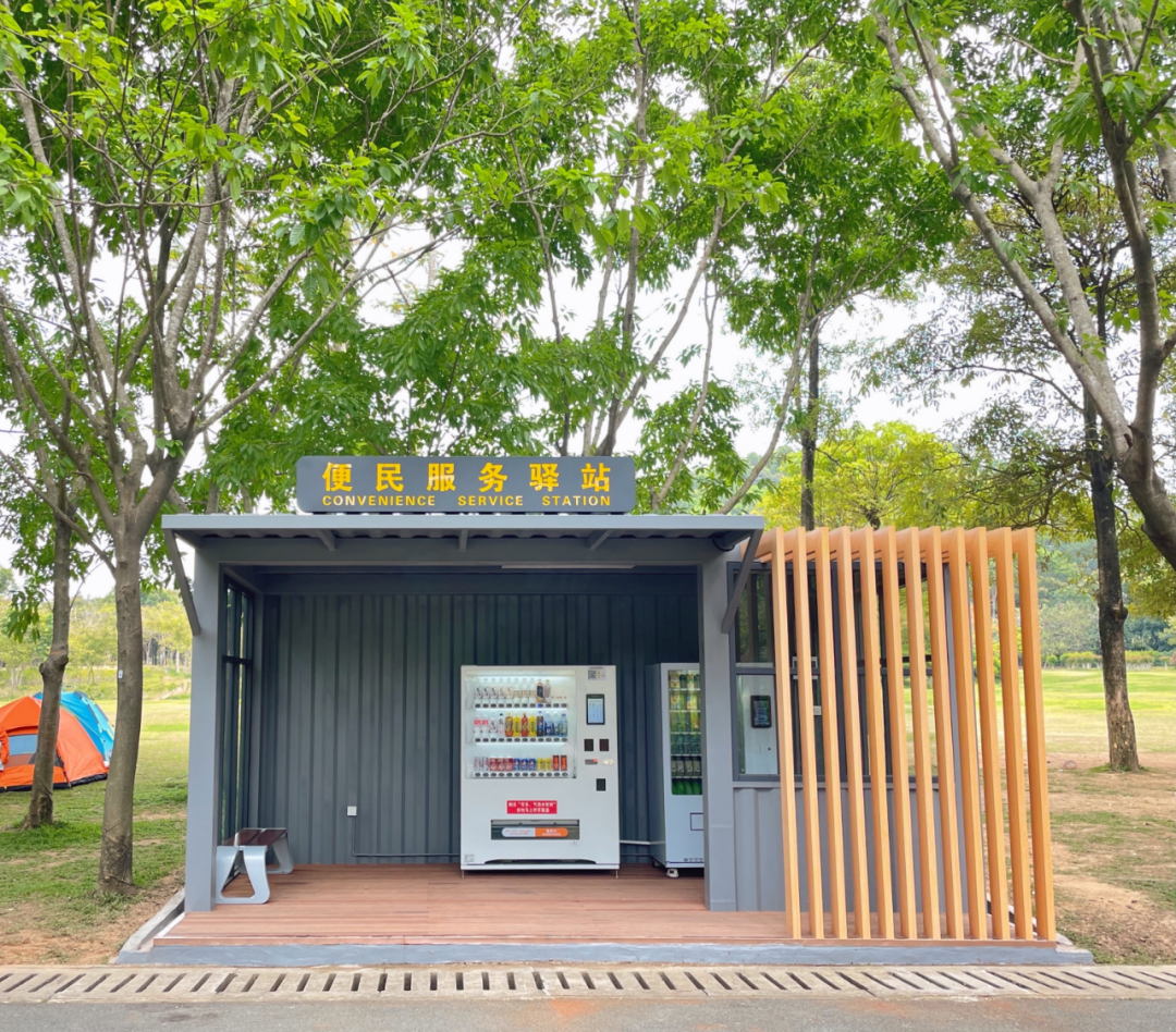 便民服务驿站建设的风格、造型、形式等将与园区周边环境相融合,构成了公园环境中的一处景点,同时承载提供自动售卖、休憩等基础服务设施的功能。