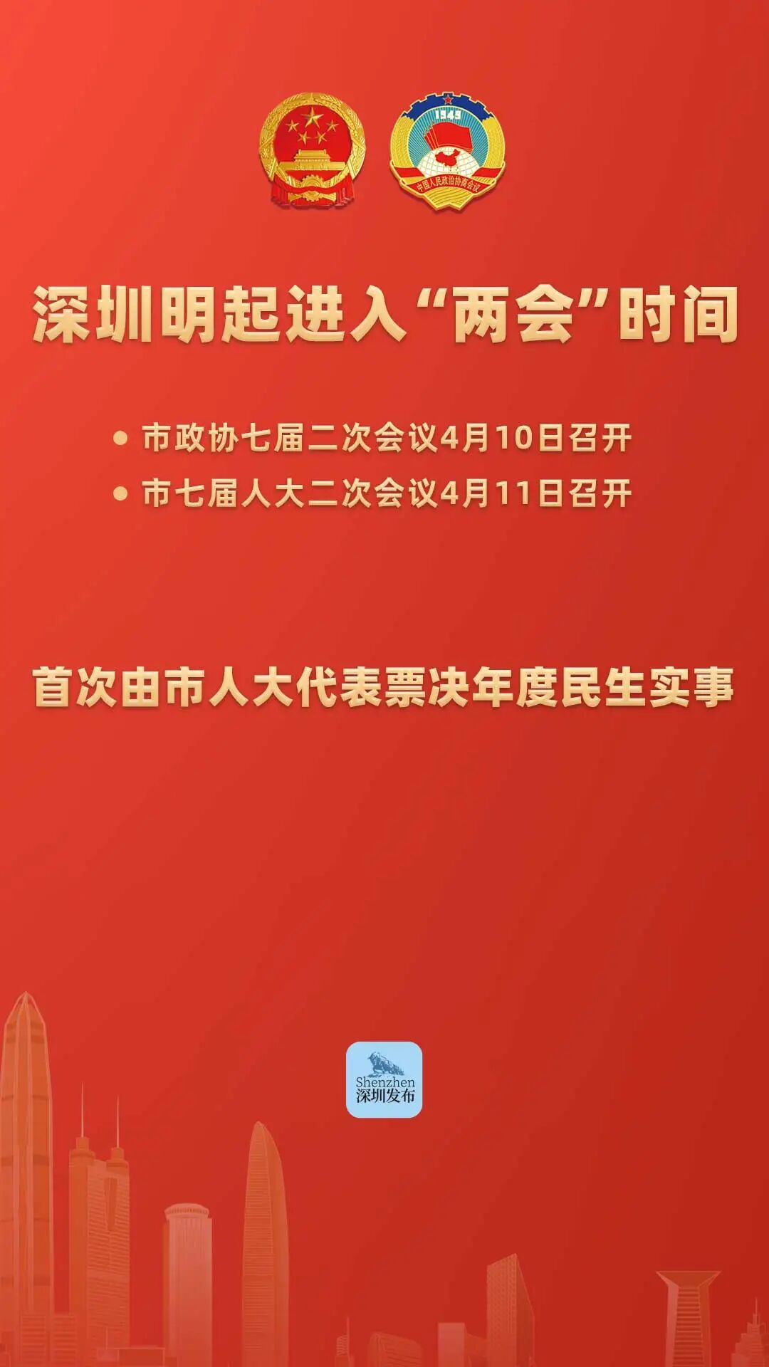 深圳市政协七届二次会议、深圳市七届人大二次会议即将于4月10日、4月11日相继召开!