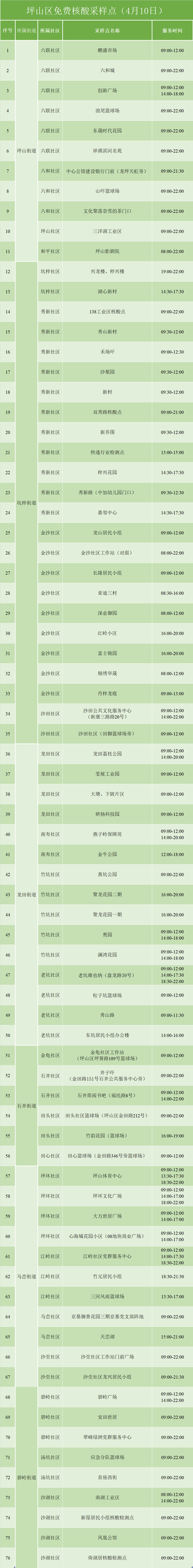 @坪山er,4月10日坪山免费核酸检测点名单都在这,小伙伴们请注意查收!同时记得测核酸时携带上有效身份证件哦!(如身份证、驾驶证、护照、带照片的社保卡等)