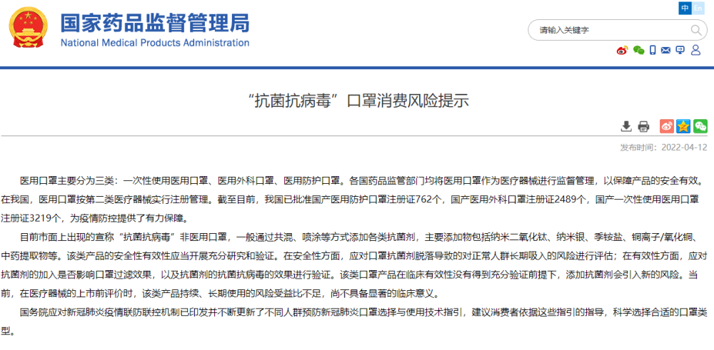 (原标题《“抗菌抗病毒”口罩消费风险提示》)