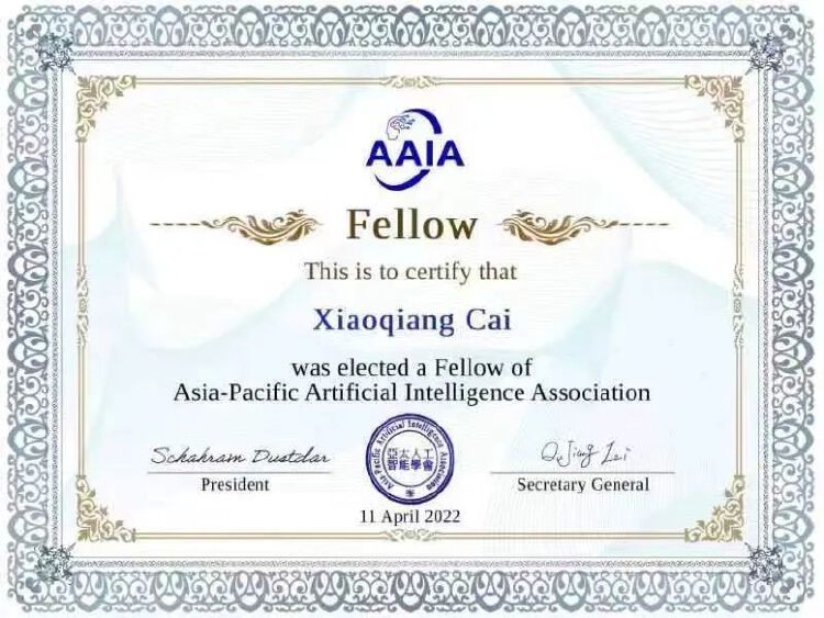 近日,香港中文大学(深圳)蔡小强教授当选亚太人工智能学会(Asia-Pacific Artificial Intelligence Association,以下简称AAIA)会士,以表彰其在人工智能及工业与系统工程领域的杰出贡献。