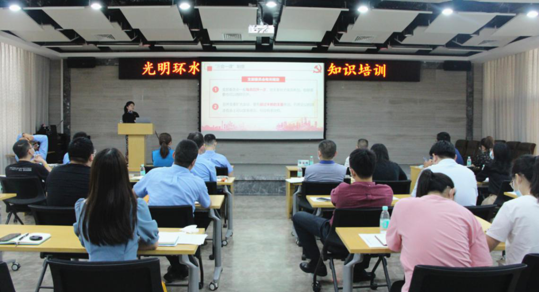 4月14日下午,光明环水公司联合党委党务基础知识培训顺利举办。公司党委书记、董事长李宝伟出席会议。党群工作部负责人及党委下属13个支部书记、党务联络员近30人参加培训。
