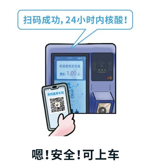 提前打开“粤康码”或“深i您”健康码,在扫码处扫码验证,健康码和核酸证明均正常后,支付乘车。
