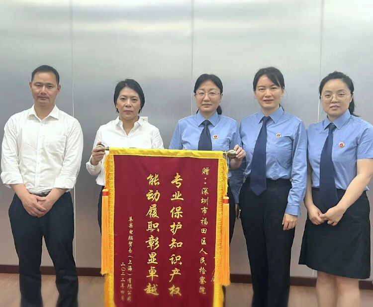 双方还就涉案物品的价格认定、商标性使用与保护、技术与商业的衔接融合等知识产权保护问题进行了广泛而深入的交流和探讨。伍金婵女士代表苹果公司将印有“专业保护知识产权,能动履职彰显卓越”的锦旗以及感谢信赠与福田区检察院知识产权办案团队。