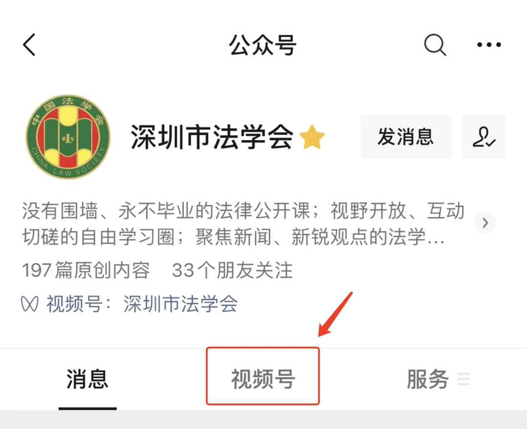 在“深圳市法学会”公众号主页面点击“视频号”菜单,进入投票界面。