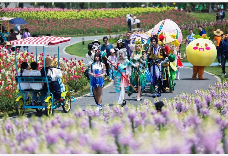 向日葵花海的旁边就是刷屏社交媒体圈的网红马鞭草花海。据悉马鞭草花海将持续到5月中旬,走进马鞭草花海。可以看到蝴蝶在花丛中起舞,花海层层叠叠,花朵随着微风轻轻摇摆,就像翻滚的紫色浪花,和自然田园风光汇成了一幅美丽的风景画,美不胜收。“五一”假期,适合带上家人、约上三五好友,漫步在紫色的马鞭草花海中,感受田园的休闲惬意,体验田园的静谧时光,解锁专属田园的紫色浪漫。