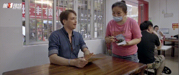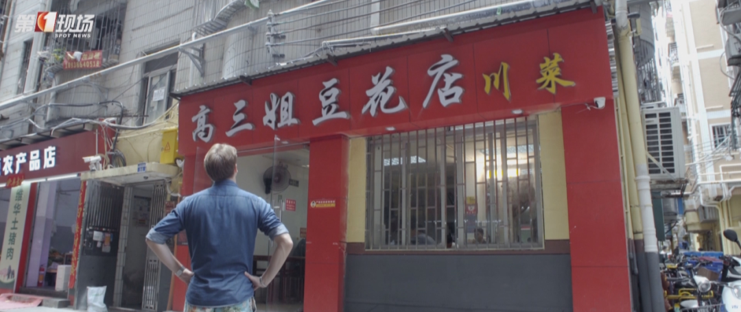 “几经波折”后,德国小哥终于找到自己今天中午的“心之所属”:川菜——高三姐豆花店。