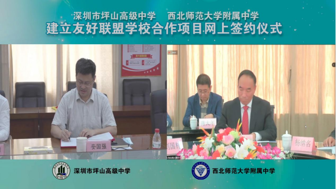 会上,坪山高级中学校长与西北师大附中校长通过网络签署合作协议。