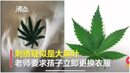 去年6月,共青团中央微信公众号曾发文提示称,购物网站上的一些服装上印有某种类似于枫叶的植物,而这种植物,正是大麻。早前,江南布衣童装品牌部分产品的印花图案暴力、阴暗甚至带有种族歧视、地狱、撒旦等“邪典风”,还印有如“Welcome to hell”(欢迎来到地狱),“let me touch you”(让我摸摸你)等不适合儿童的文字内容,引发高度关注。