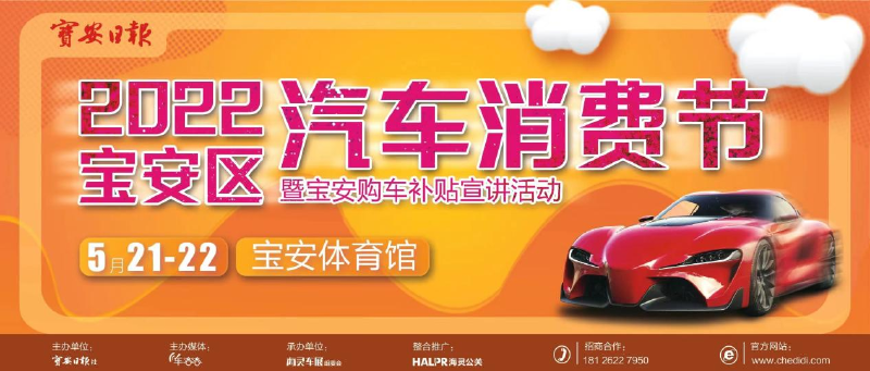 据了解,2022宝安区汽车消费节暨宝安购车补贴宣讲活动由宝安日报社主办,车嘀嘀汽车网、哪买车深圳站协办,海灵车展组委会承办,4S店智能营销平台——车嘀嘀汽车网提供数据营销服务,海灵广告提供整合推广。本届“2022宝安区汽车消费节”拟联合多家主机厂,80+品牌,500款新车型,近200家车商乘“宝安购车补贴政策”东风,创新车展活动形式,放大促销活动效应,培育形成“政府搭建平台、经销商促销、全民乐享消费”的主题促消费氛围。