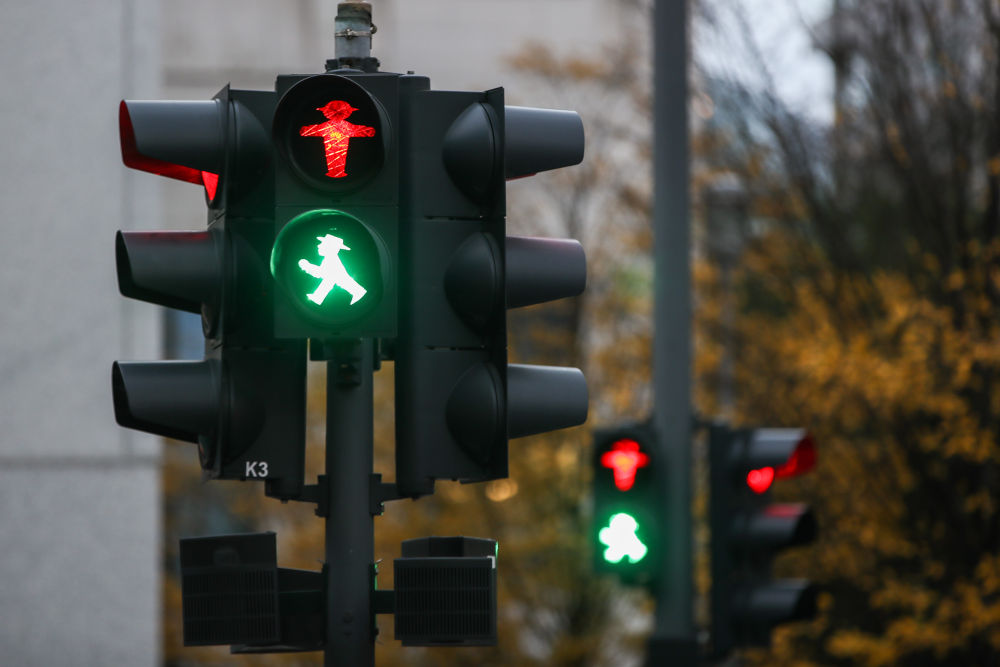 这是2020年11月19日在德国首都柏林拍摄的行人信号灯。新华社记者 单宇琦 摄