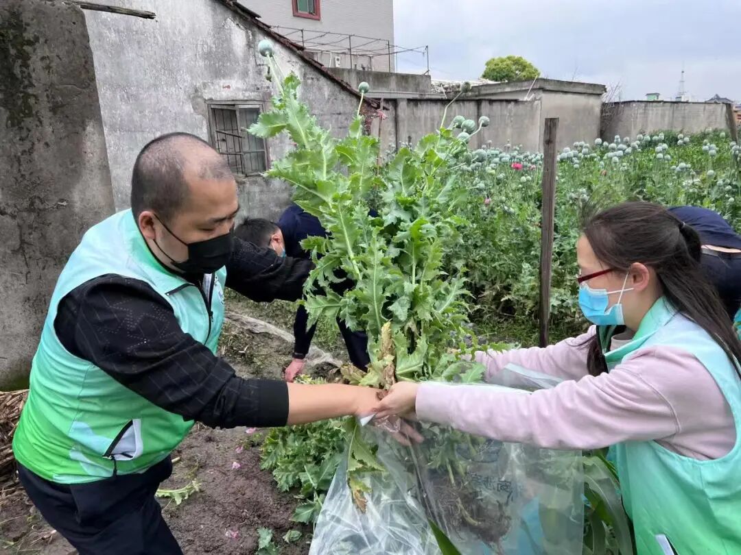 5月2日晚,杭州市富阳区大源派出所接到群众举报称:村里有疑似罂粟植株,民警立即赶到现场,在冯某家旁边的菜地找到了一片已开花的罂粟。民警发现后,迅速组织警力当场铲除