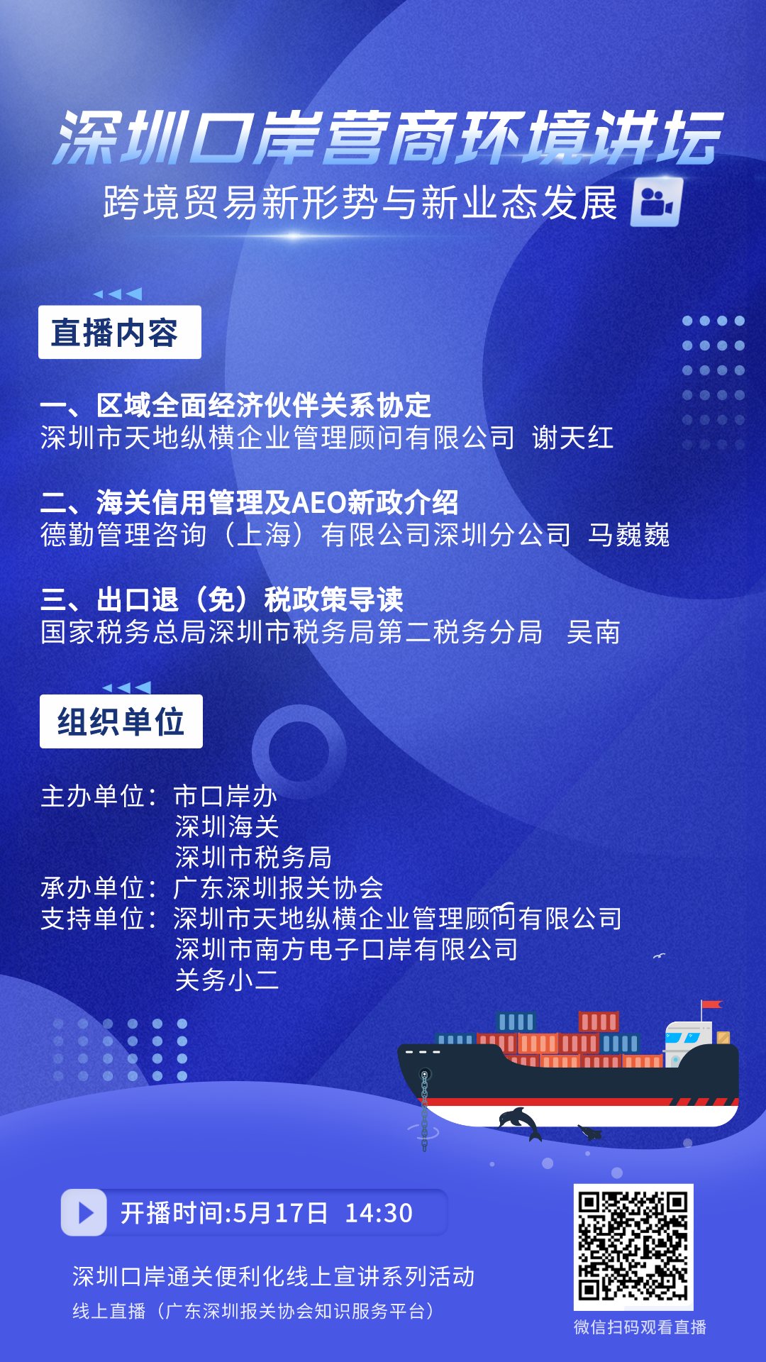 为了让广大企业进一步了解相关政策、措施,提升企业应对跨境贸易新形势与新业态发展的专业能力,深圳市人民政府口岸办公室携同深圳海关及相关政府部门于2022年举办深圳口岸通关便利化线上宣讲系列活动。